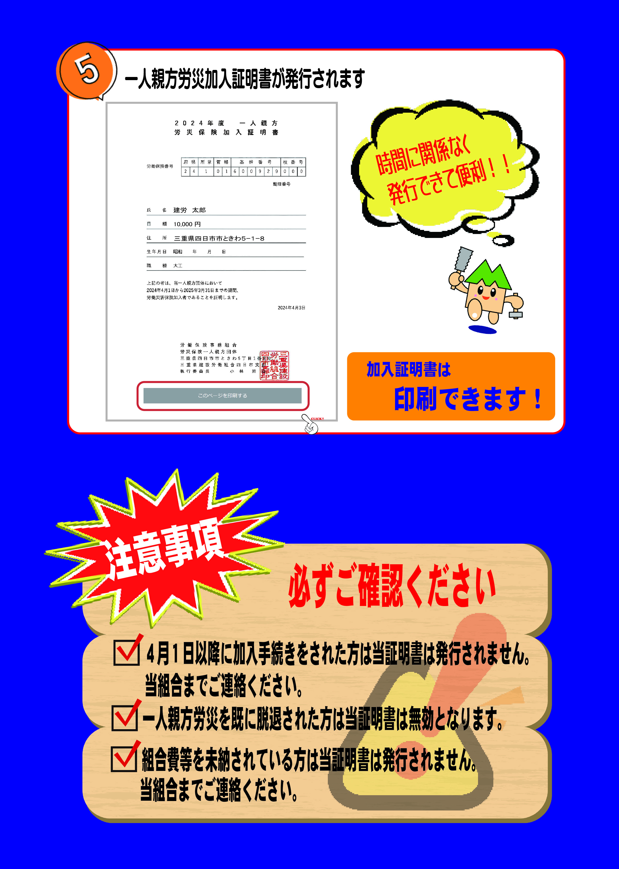 新年度の労災加入証明書が四日市支部ホームページから発行できます!